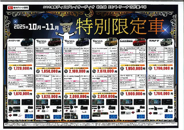 ダイハツ限定車販売中です。 詳しくはスタッフまで問い合わせ下さい。